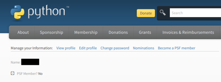 如果再次回到自己 python.org 帳號頁面選 View profile 的話,也可以看到自己 PSF Member 的狀態是 「 Yes 」: