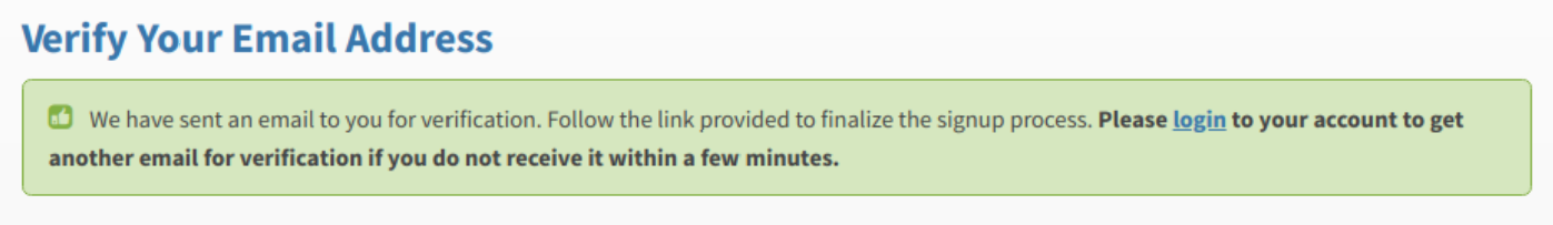 填寫完資料點下藍色的 「 Sign Up 」之後,會提示你去電子信箱收件:
