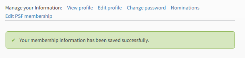 填完基本資料與勾選同意 PSF 行為準則( I agree to the PSF Code of Conduct ),按下 Save Profile 。如果你看到這個確認畫面,恭喜你!你已經成為 PSF 基本會員了!