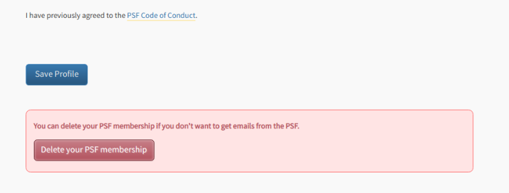 如果反悔了,也可以透過自己 python.org 的帳號來刪除自己的 PSF membership ,像是這個畫面: